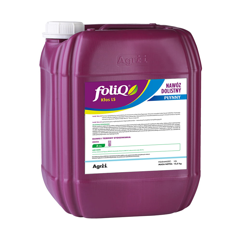 FoliQ Kłos LS to innowacyjny nawóz dolistny, opracowany z myślą o zbożach ozimych i jarych, stosowany w kluczowych fazach rozwojowych: od pojawienia się liścia flagowego do początku kłoszenia. W tym okresie rośliny intensywnie gromadzą asymilaty, które później przekazują ziarniakom. Aby proces ten przebiegał sprawnie i bez zakłóceń, FoliQ Kłos LS dostarcza precyzyjnie dobrany kompleks mikroelementów, wspierając rośliny w efektywnym nalewaniu ziarna.
