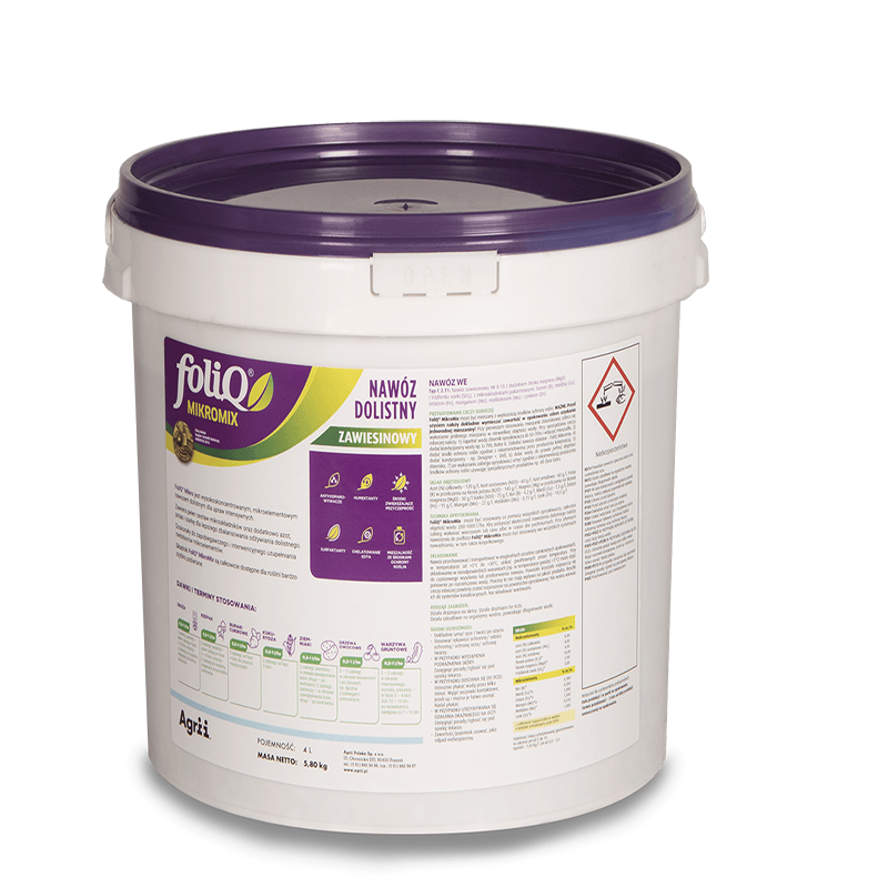 FoliQ MikroMix – nawóz dolistny z kompleksem mikroelementów, wspiera wzrost, odporność i plonowanie upraw rolniczych, warzywnych i sadowniczych.