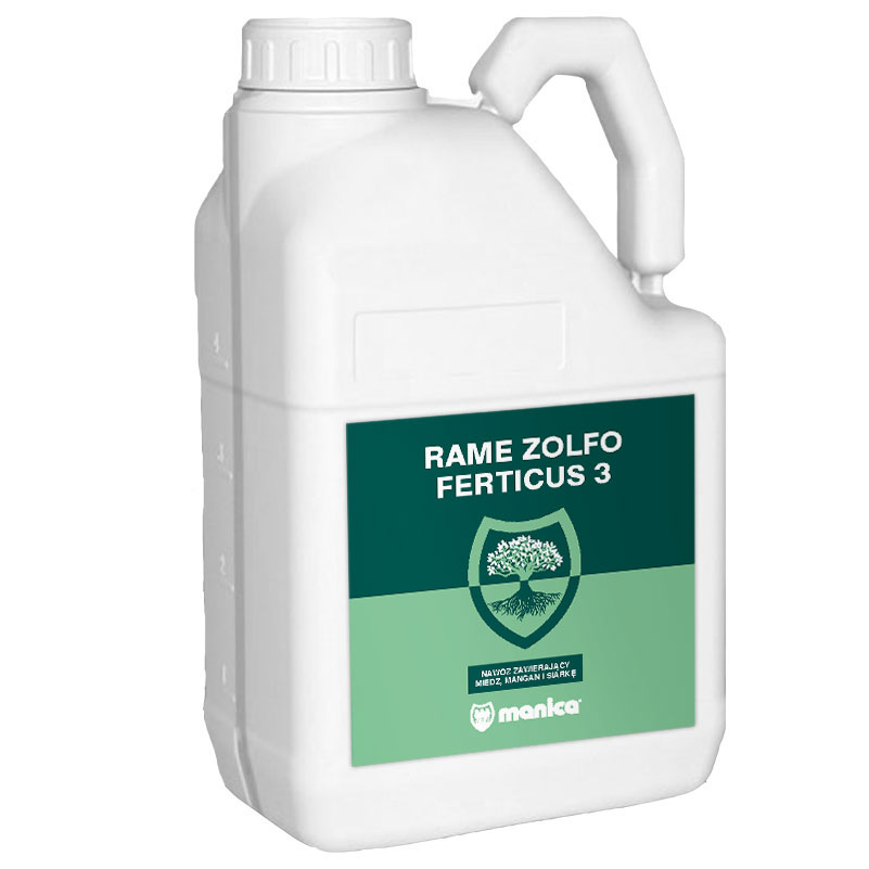 RAME ZOLFO FERTICUS 3 to dolistny nawóz z miedzią, manganem i siarką, zapobiegający niedoborom i wspierający prawidłowy rozwój roślin.