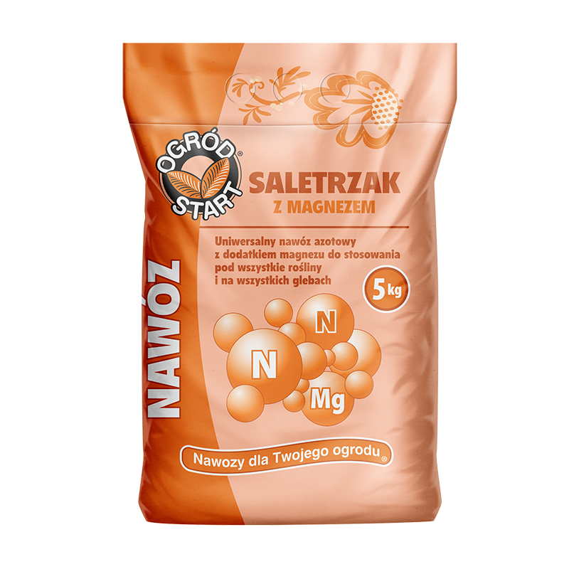 Saletrzak z magnezem – granulowany nawóz azotowy z magnezem, zawiera 27% azotu i 4% MgO. Wspiera wzrost i regenerację roślin, idealny do różnych upraw.